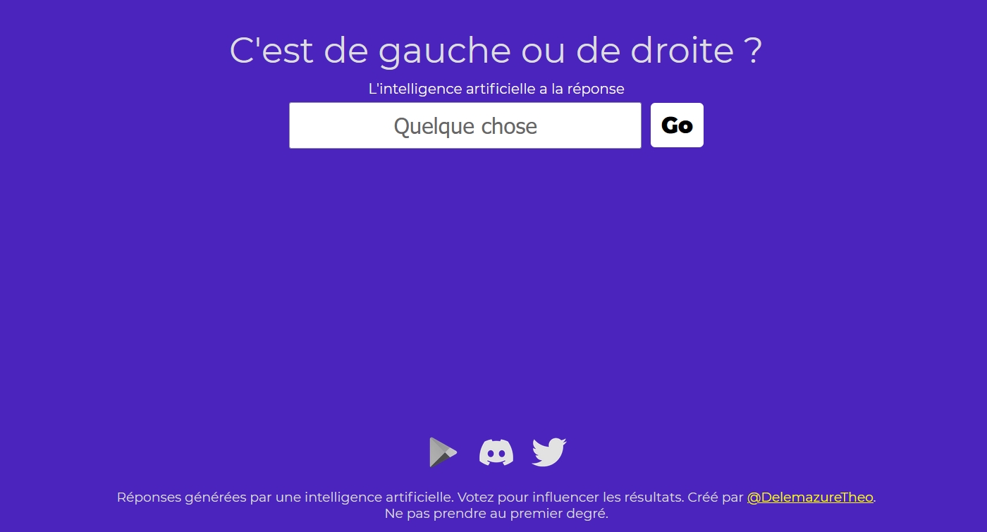 degaucheoudedroite.delemazure.fr is a website that uses AI and user feedbacks to tell if things are associated to the left or to the right (politically). It got an unexpected success with one million queries in less than three days, and was seen on French television.